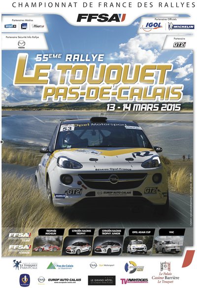 Épreuve d’ouverture du Championnat de France, le rallye Le Touquet Pas-de-Calais, qui fête cette année sa 55ème édition, enregistre une nouvelle fois une belle participation avec près de 155 engagés dans les rallyes moderne et historique. Avec 8 WRC, 7 R5, 4 S2000, 7 Porsche, les 13 ADAM de l’Opel ADAM Cup et le Citroën Trophy, il va y avoir du spectacle sur la Côte d’Opale du 12 au 14 mars 2015 et ce d’autant que la météo s’annonce printanière.